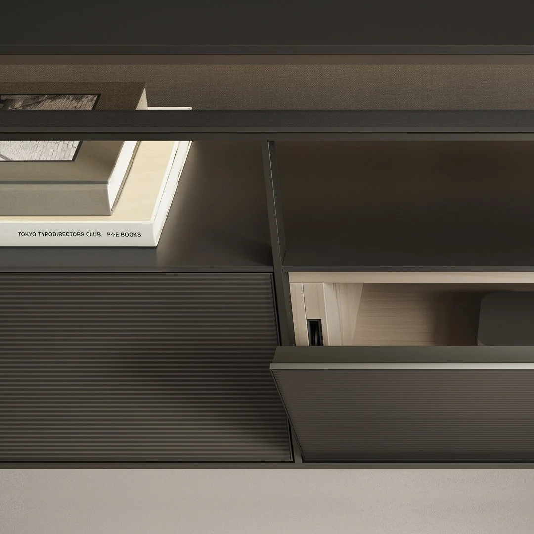 Expansive living spaces allow for both openness and intimacy. In selected residences, elegant Rimadesio sliding doors can be introduced to create beautifully defined zones within the home. These sophisticated partitions allow spaces to flow with purpose, transforming areas into a private TV lounge, rumpus retreat or dedicated wine room, while preserving the sense of light and connection throughout the residence.