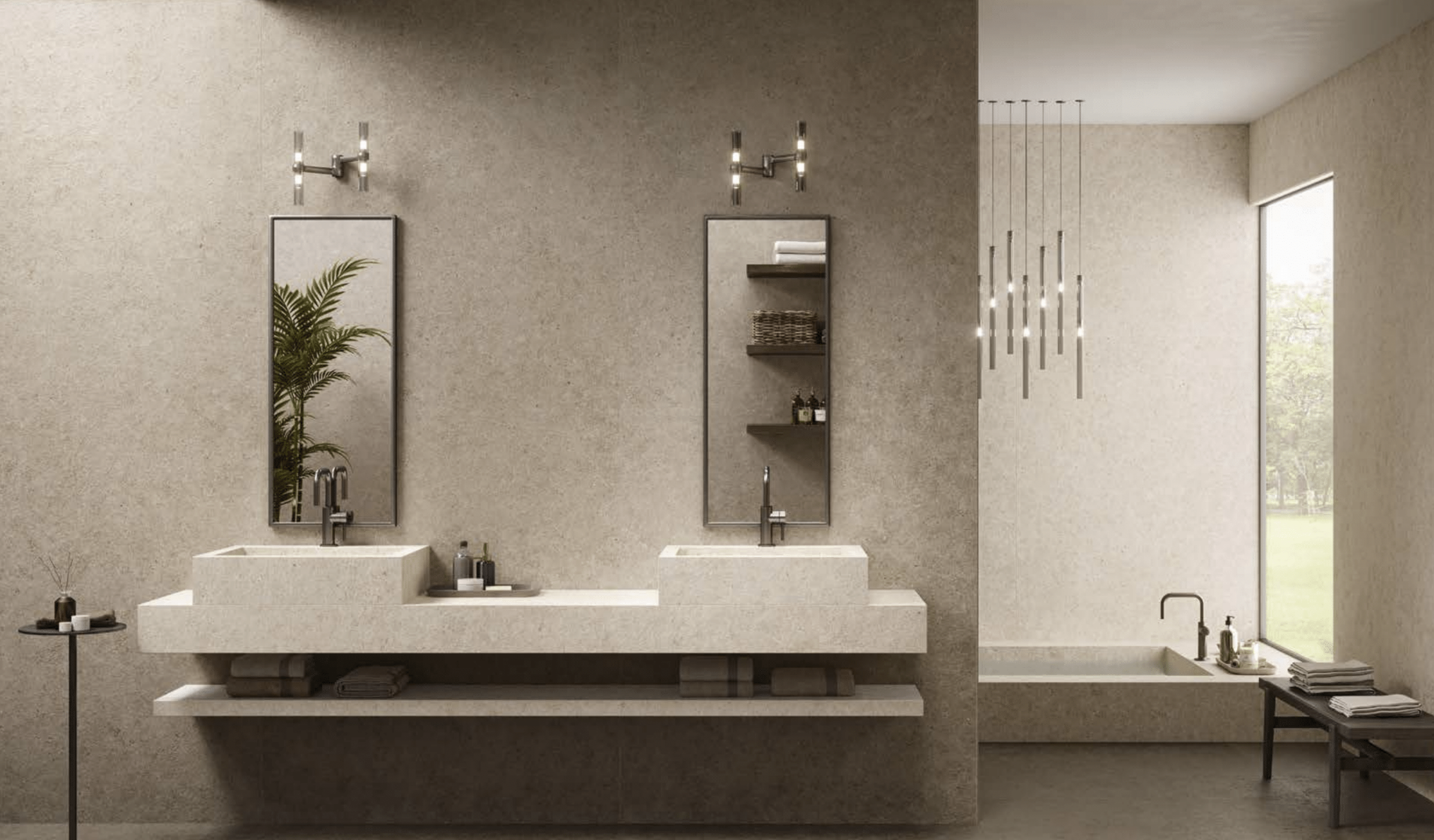 Deeper porcelain tones, smoked timber finishes and brushed metal accents create a sophisticated and layered palette. The Dark Collection introduces depth and contrast, offering a bold yet timeless interior character.